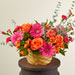 Celebrate the colorful side of life with the Sweet Treat bouquet arriving in an adorable basket ready for the summer party. The hot pink gerbera daisies and mini carnations will pull focus on this bright delight.