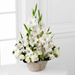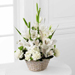 The FTD® Eternal Affection™ Arrangement is a peaceful offering of heartfelt sympathy. White gladiolus, Peruvian lilies, carnations, mini carnations and lush greens are beautifully arranged in a round whitewash handled basket to create a beautiful display of soft serenity.