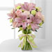 The FTD® Girl Power™ Bouquet brings together roses and Asiatic lilies to send your sweetest sentiments and offer your congratulations on the birth of their new baby girl! Pink roses, pink Asiatic lilies, pale peach carnations, pale green mini carnations and lush greens are exquisitely arranged in a clear glass gathered square vase. Accented with a pink satin ribbon, this flower bouquet creates a wonderful way to send your warmest wishes for the adventure of parenthood ahead.