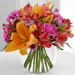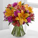 The FTD® Light of My Life™ Bouquet offers your special recipient fresh vibrant color to brighten their day! Orange Asiatic lilies, fuchsia carnations, red Peruvian lilies, lavender chrysanthemums and lush greens are perfectly arranged in a clear glass bubble bowl vase to send your sweetest sentiments across the miles.