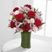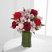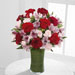 The FTD® Love in Bloom™ Bouquet is the perfect expression of sweet affection and adoration. Rich red roses, burgundy carnations, pink Peruvian lilies, pink mini carnations and lush greens are gorgeously arranged in a clear glass vase lined with a ti leaf to create a stunning way to convey your most heartfelt emotions.