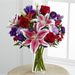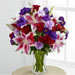 The FTD® Stunning Beauty™ Bouquet is an absolutely lovely way to send your love and affection across the miles. Fragrant Stargazer lilies stretch their star-like petals across a bed of rich red roses, lavender carnations, red Peruvian lilies, purple double lisianthus, purple matsumoto asters and lush greens. Presented in a classic clear glass vase, this elegant bouquet is an incredible way to convey your sweetest sentiments.
